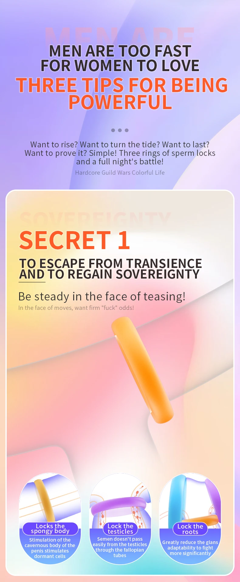 Upgraded small 3-piece penis ring sex toy for gay men with delayed ejaculation, masturbation vibrator, and other sexual products
